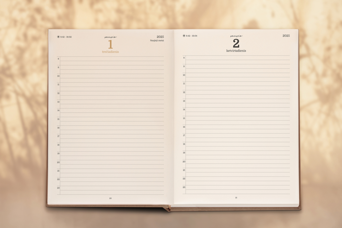 Ši darbo knyga sukurta visiems laisvadarbiams, kurių darbas neapsiriboja standartine darbo savaite. Knygoje rasite po pilną puslapį šeštadieniui ir sekmadieniui, o visos valandos dienose sužymėtos iki pat nakties!