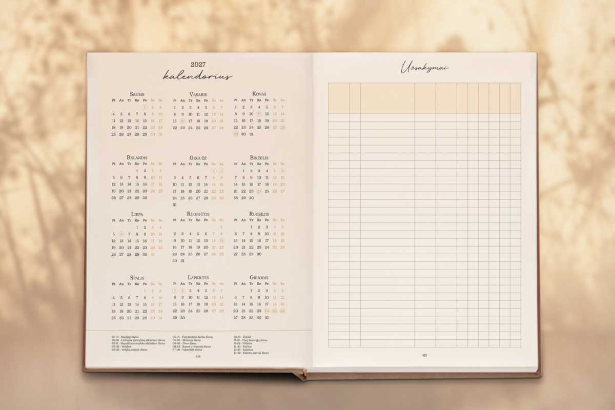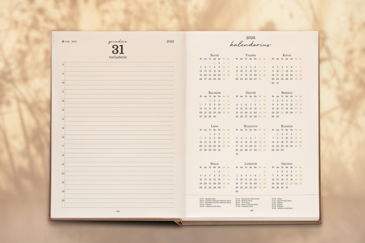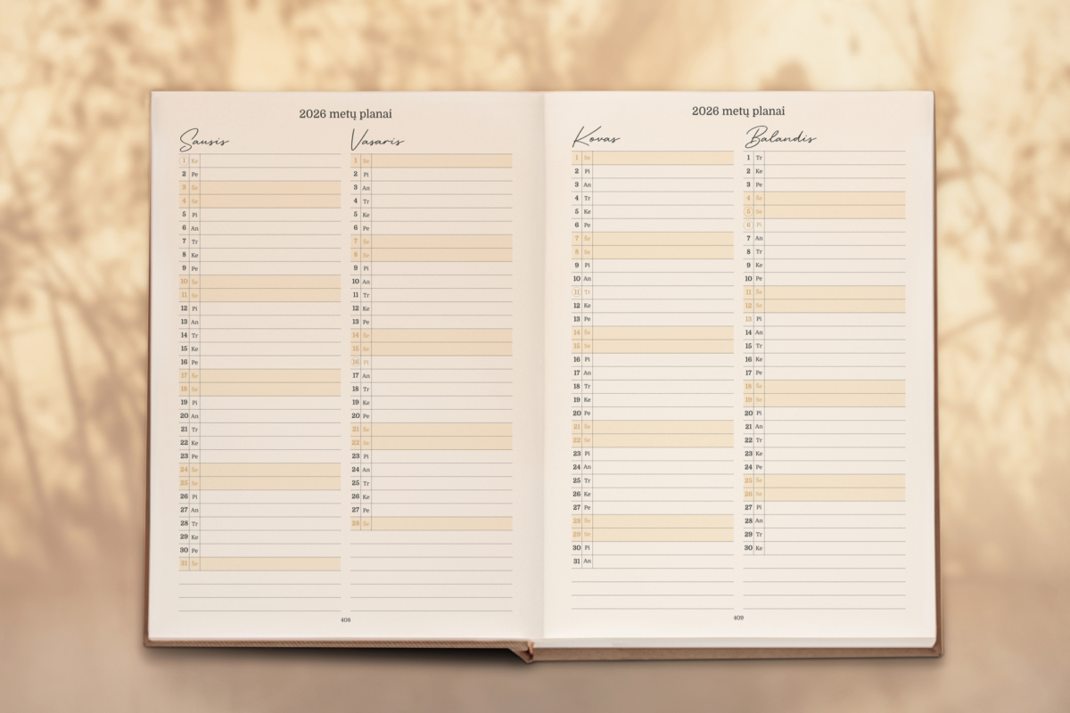 - 2026 m. kalendorius ir kiekvieno mėnesio planas.