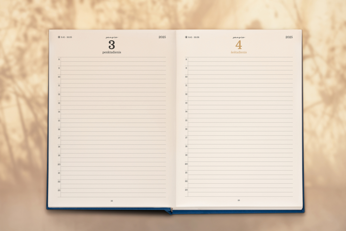 Ši darbo knyga sukurta visiems laisvadarbiams, kurių darbas neapsiriboja standartine darbo savaite. Knygoje rasite po pilną puslapį šeštadieniui ir sekmadieniui, o visos valandos dienose sužymėtos iki pat nakties!