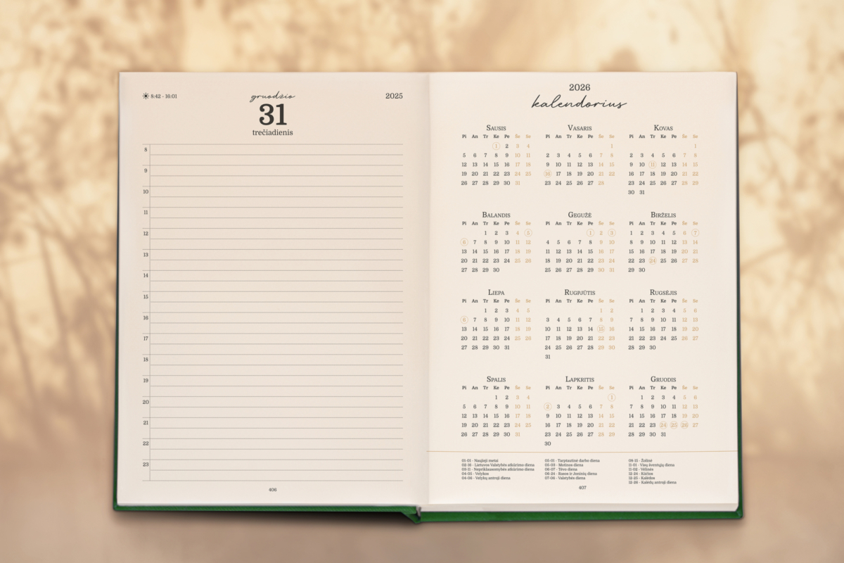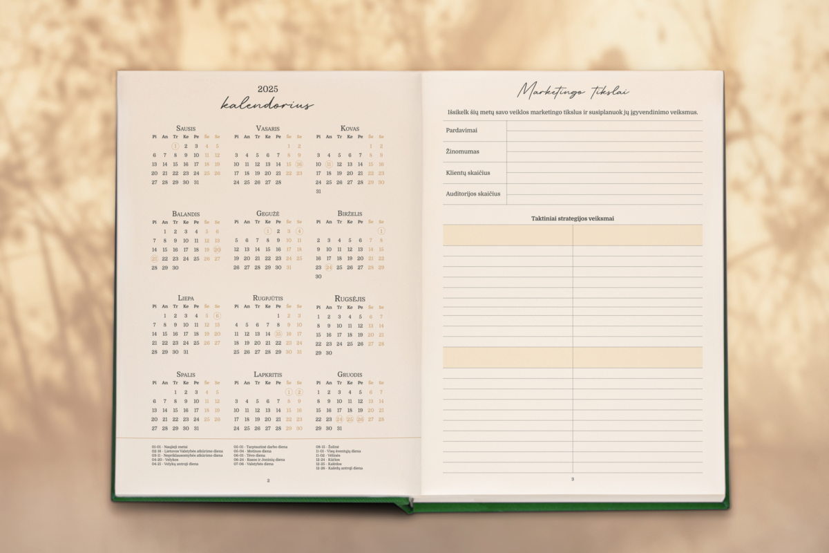 - 2026 m. kalendorius ir kiekvieno mėnesio planas.