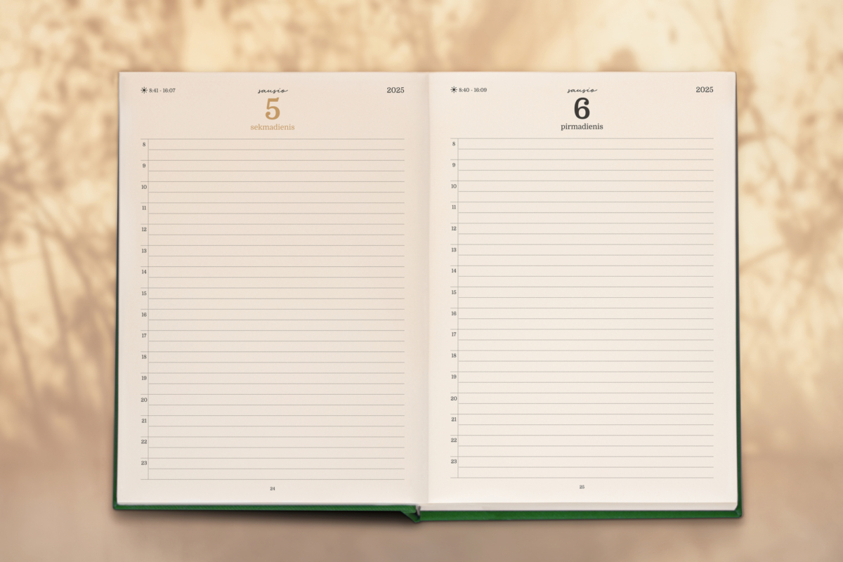 Ši darbo knyga sukurta visiems laisvadarbiams, kurių darbas neapsiriboja standartine darbo savaite. Knygoje rasite po pilną puslapį šeštadieniui ir sekmadieniui, o visos valandos dienose sužymėtos iki pat nakties!